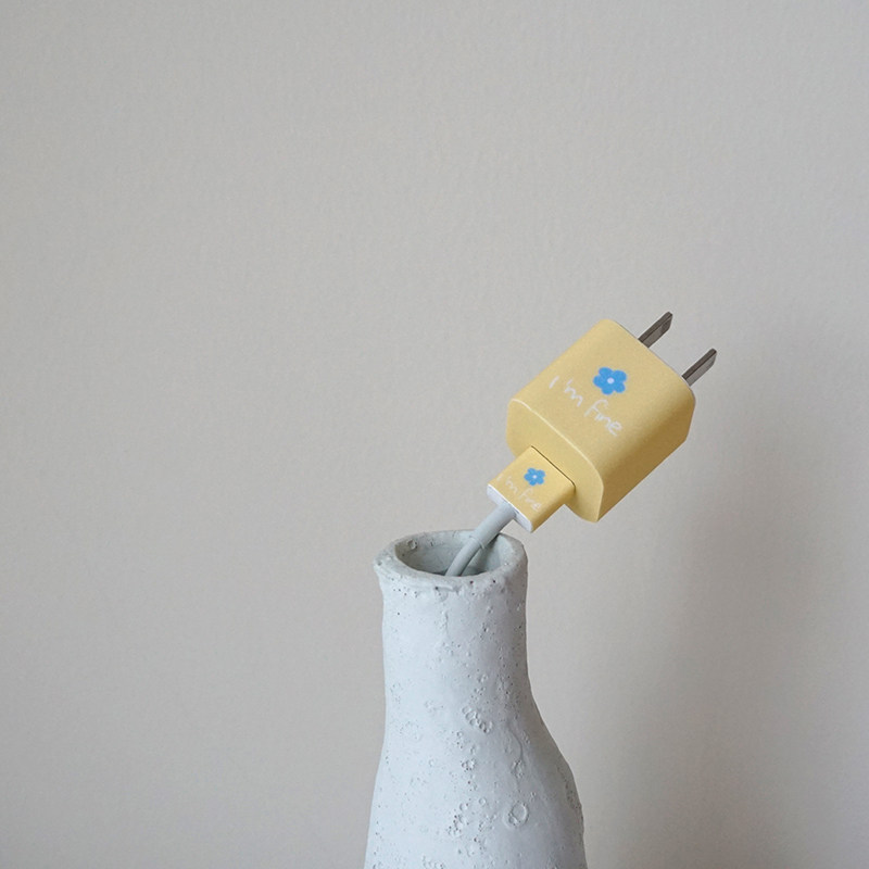 爆款現貨韓國ins奶黃色充電器貼紙iphone小清新配色花花充電頭保護電源貼 露天拍賣